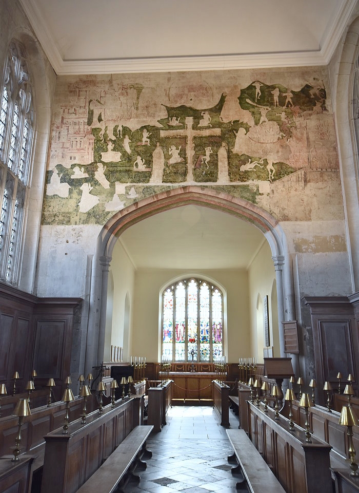 休·克洛普頓 (Hugh Clopton) 描繪了一系列壁畫圖像,其中包括厄運、死亡寓言、亞當的生平和聖喬治屠龍。