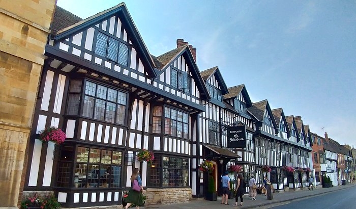 亞芬河畔史特拉福(Stratford-upon-Avon),其歷史最早可以追溯到羅馬時代;在 7 世紀盎格魯撒克遜人居住時一直是個村莊,直到 12 世紀末發展成為一個城鎮;中世紀曾經是英格蘭中部的羊毛商貿區,繁榮一時。這座古老雅致的小鎮因是著名劇作家莎士比亞的故鄉而名聞遐邇,吸引世界各地廣大粉絲前來朝聖,成爲英國旅遊勝地。「史特拉福的歷史脊梁(Stratford’s Historic Spine)」, 曾經是從鎮中心到教區教堂的主要路線,始於莎士比亞出生地的亨利街,止於舊城區的聖三一教堂,沿途可見自 14 世紀到 20世紀的歷史建築,已成為英國最具歷史意義的步道之一。