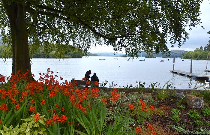 自The Belsfield Hotel花園草坪眺望溫德米爾湖。