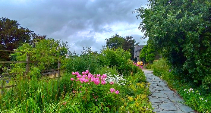 從停車場到Hill Top主屋路上,花木繁茂的商店。
