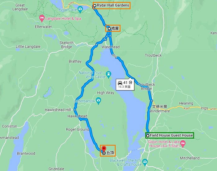 當時湖區住宿是位於Bowness的Field House Guest House,B&B型態的民宿。