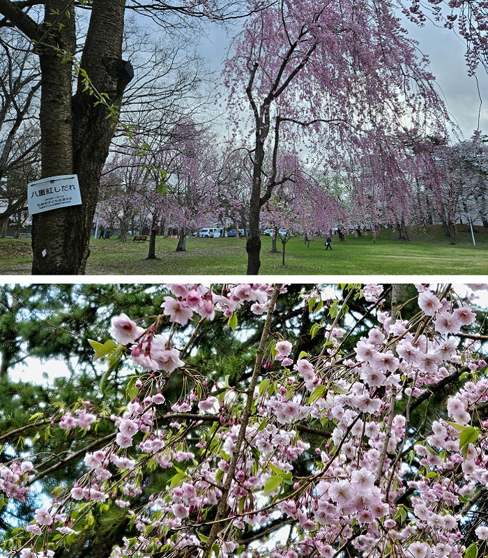 穿過染井吉野櫻,又見八重垂枝櫻環場。