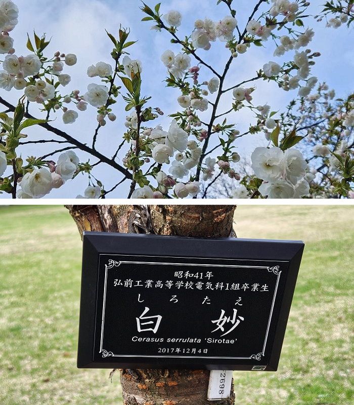 御瀧櫻,植於1914年,盛開時整個枝條會垂入內濠內而得名,被列為「弘前市古木名木」。