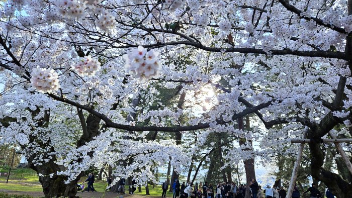 看到非常多人聚集在二之丸城跡廣場某棵櫻花樹下拍照,定要前往湊熱鬧。