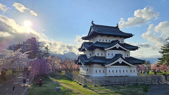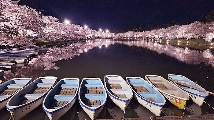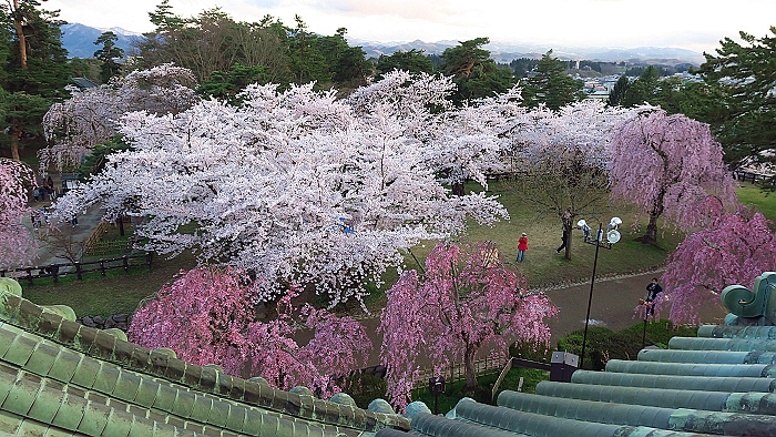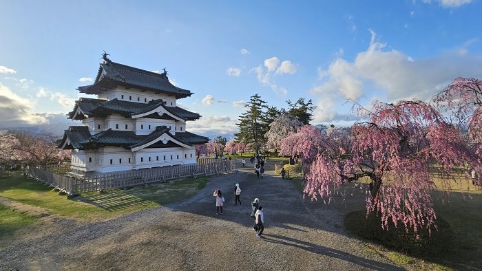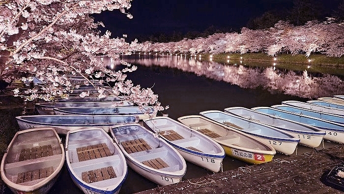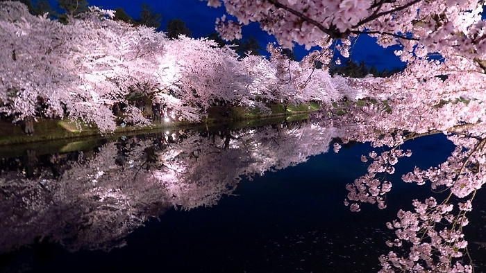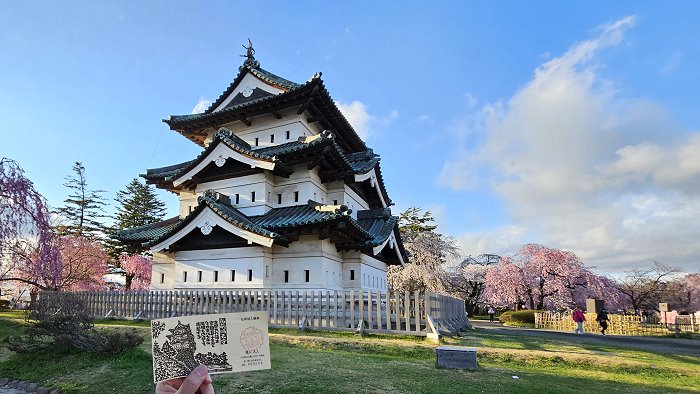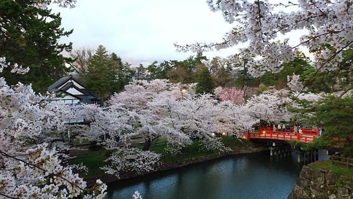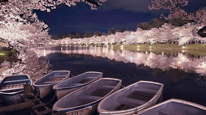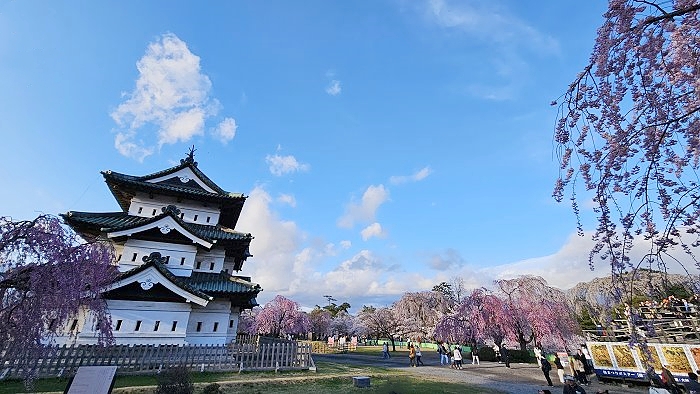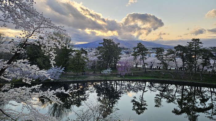 弘前公園,坐落於弘前市區,面積約50萬平方公尺,公園內以現存江戶時代天守的弘前城為中心,四周遍植染井吉野櫻、枝垂櫻、八重櫻等共 52 種、約 2,600 棵的櫻花樹,有著「日本第一櫻花」美稱,據說是源自西元1715年 由當時津輕籓士從京都帶回來的霞櫻等25棵櫻花樹在城內栽種而開始,之後由市民捐贈等增加數量,進入大正時代之後,才逐漸變成像現在充滿櫻花樹的壯觀規模。每當櫻花盛開時節,在此渲染出春天最絢爛的美景,被選為日本櫻花百選名所、日本百選名景等,是日本超人氣的賞櫻景點之一,每年4月下旬至5月初所舉行的「弘前さくらまつり(弘前櫻花祭)」,滿園漫天櫻花蔚成撼動人心的絕美景況,吸引到海內外約上百萬遊客絡繹不絕前來。