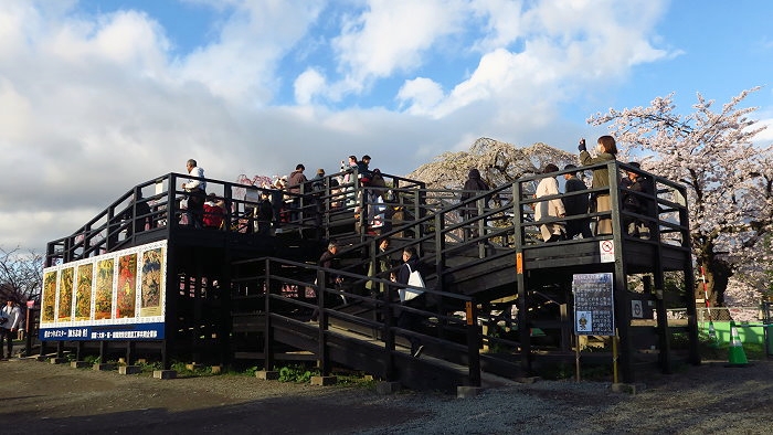 為了方便遊客觀看弘前城石垣修復工程和移動後的天守閣,所設置的臨時展望台。