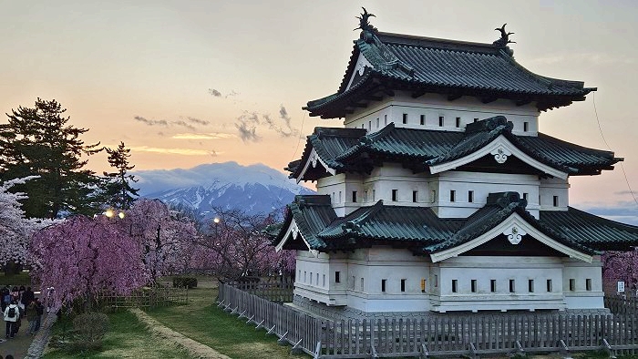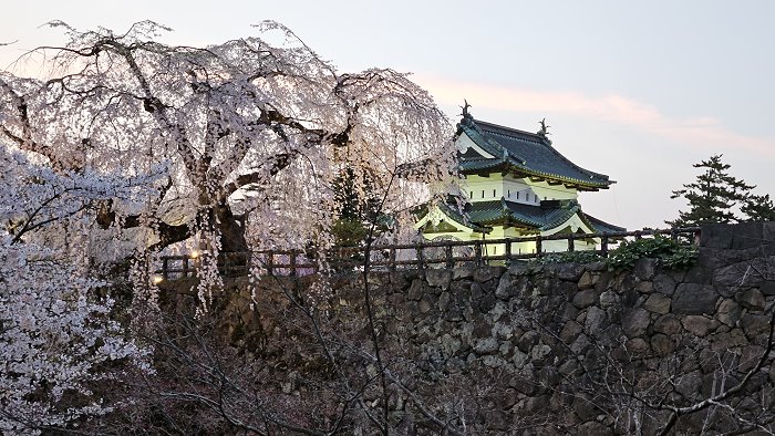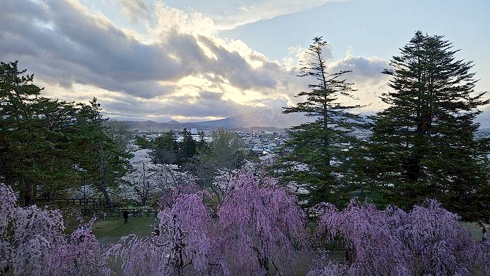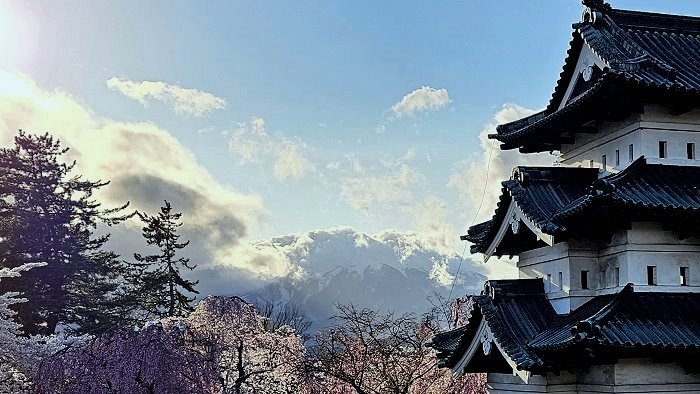 在石垣修復工程期間的櫻花祭,才有機會見到被稱為「津輕富士」的岩木山、櫻花和天守閣同框的期間限定美景。