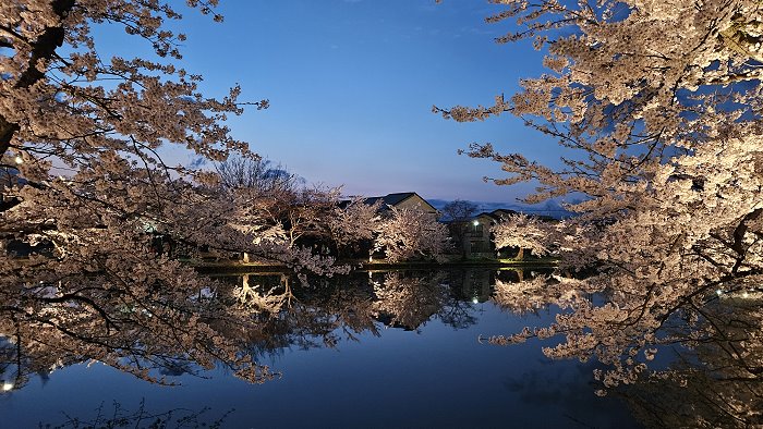 自春陽橋向北眺望西濠兩岸的櫻花盛景。