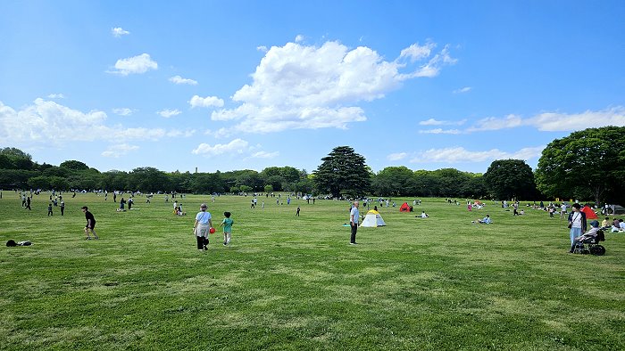 大眾草原(みんなの原っぱ),位於園內正中央的大草坪,約11萬平方公尺的區域內,有巨大的樹木和遼闊的綠地,為廣受市民歡迎的活動空間,草原上盡是來野餐的市民,席地歡聚。
