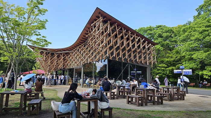 大眾草原東側有知名建築師隈研吾設計的「OKA CAFE」咖啡店,立於綠林環場之間。