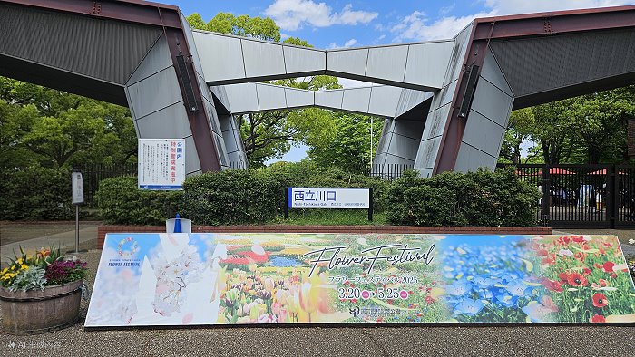 昭和紀念公園「西立川口」前立有「Flower Festival(花卉節)」扛棒。入園需購票,當時為450日元。