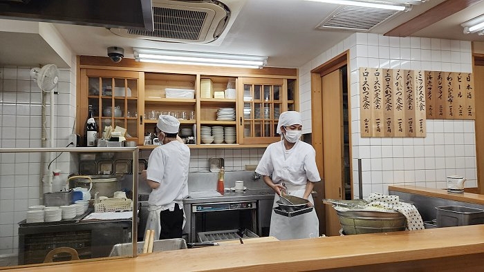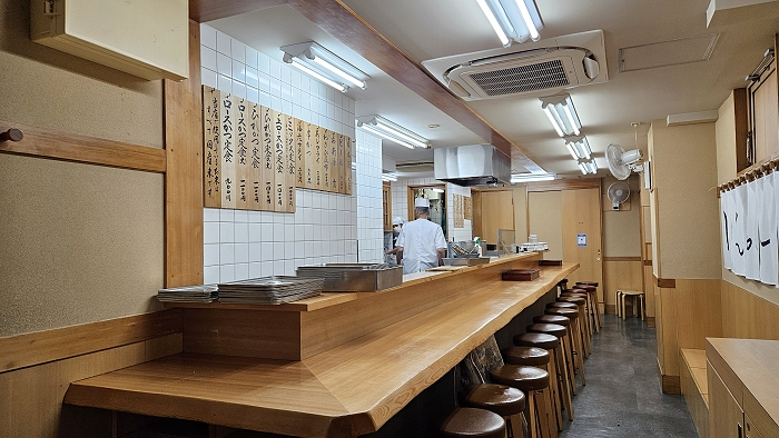 難得一見空無一人的「とんかつ山家 御徒町店」全景,原掛門口店名布招收掛在右側候位區。