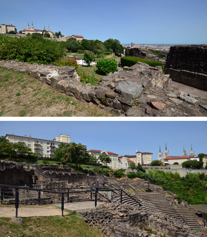 古羅馬劇場(Théâtre antique de Lyon),通常被稱為「大劇場(Le Grand Théâtre)」,建於西元前20年,是羅馬高盧時期最古老的劇場之一,直徑達108公尺,西元2世紀改建時,劇場空間內增加了11000個座位,可見當時劇場演出的盛大景象;與法國維埃納(Vienne)、歐坦(Autun)的劇場並列為最大的三座古羅馬劇場。