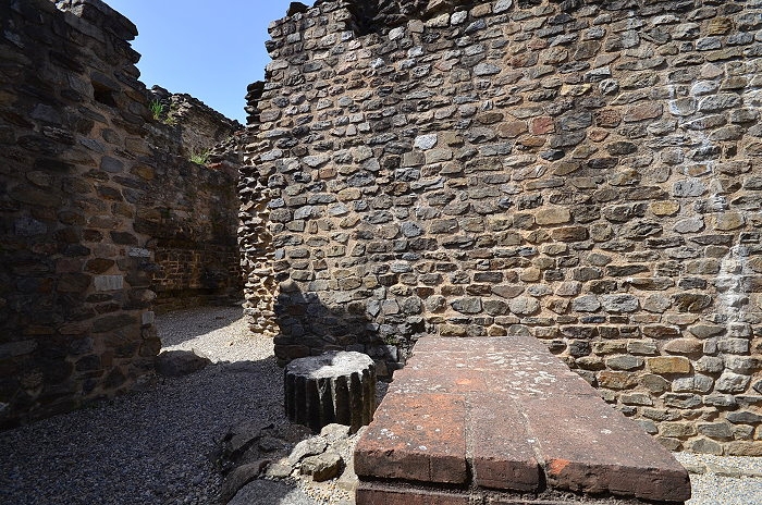 羅馬道路,兩座高聳的建築構成了它的主要景觀:左側是劇院,右側則是一座可能是公共的大型建築的遺跡。羅馬道路的典型特徵是鋪設大型石板(↑圖左側),這種做法只在城鎮中出現。