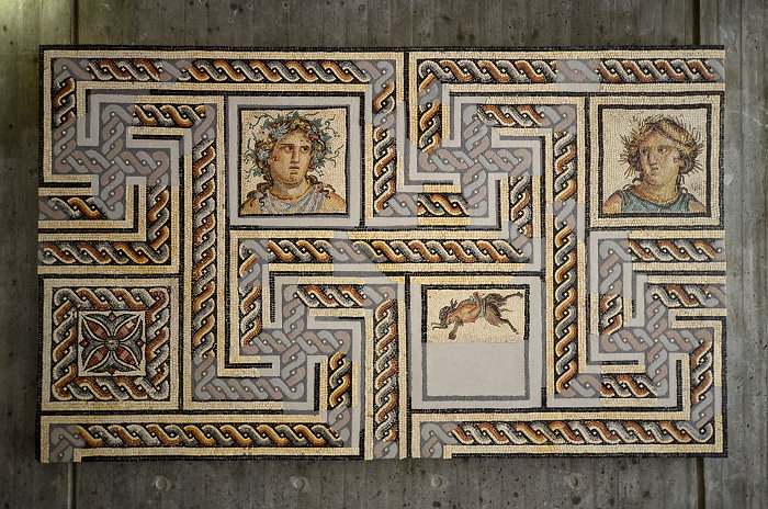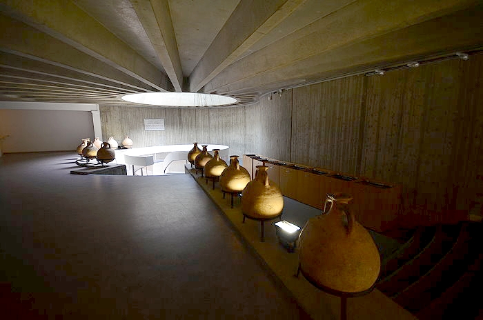 高盧羅馬博物館(Musée gallo-romain de Lyon)入口處內部。開業於1975年,展示羅馬人、凱爾特人和羅馬時代之前的考古發現,是法國最大、最全面記載高盧羅馬文明的博物館。
