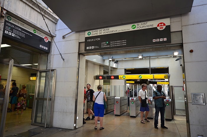 Vieux Lyon車站口,左側可搭乘地鐵D線。