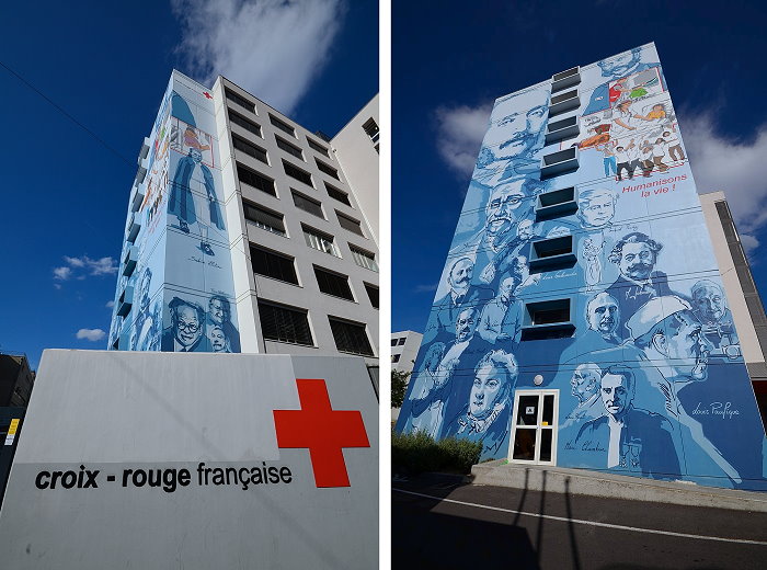 《里昂、健康、生活(Lyon, la santé, la vie) 》壁畫,位於區域衛生與社會培訓學院,是Cité Création團隊於1993年創作,於2013年進行了修復,向里昂醫學史上的傑出人物以及法國紅十字會的志工、學生和員工致敬。