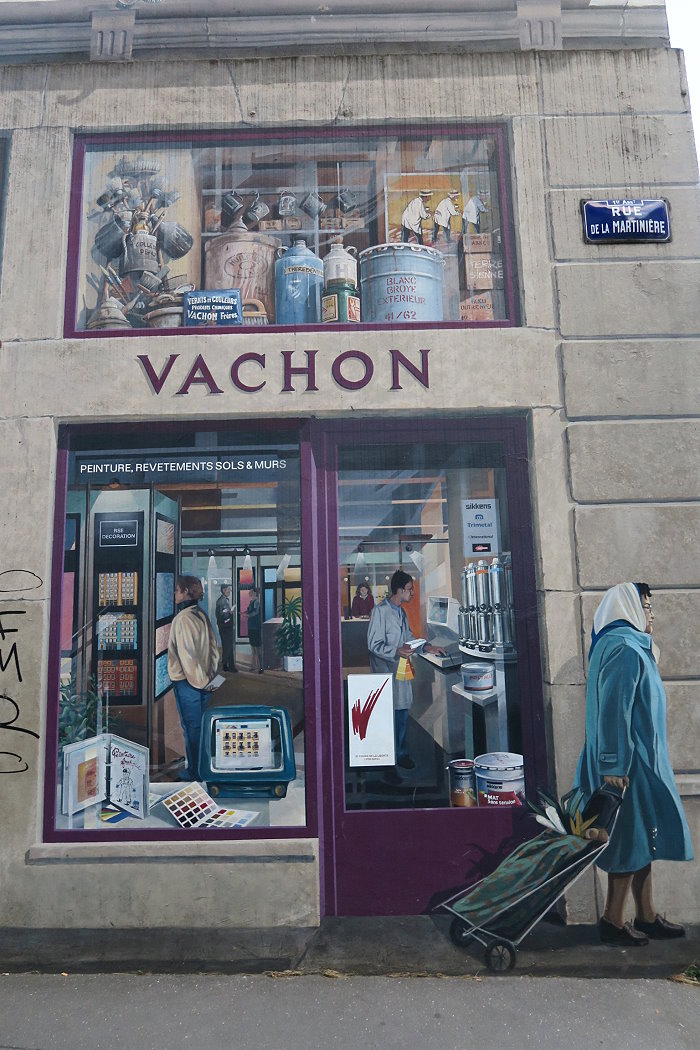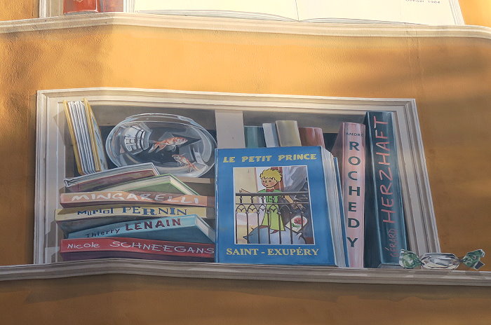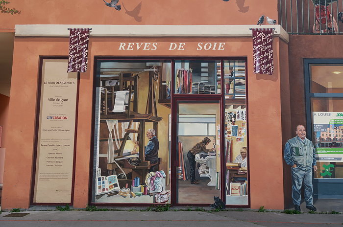 一家向里昂絲綢工人致敬的商店──「REVES DE SOIE」,意為「絲綢之夢」。描繪出絲綢業特有的各種元素:絲軸、織布機、絲綢加工等等,展現了當地傳統活動和社區精神。