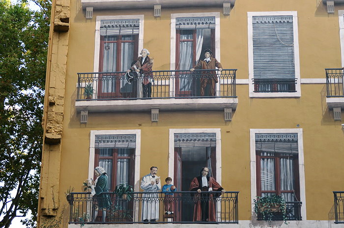 從「吉貝爾·約瑟夫書店(Gibert Joseph)」出來的是法國名記者Bernard Pivot;其上方陽台為法國自然史學家Antoine de Jussieu;右上方是生物化學家 Marcel Mérieux。