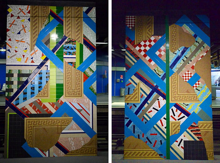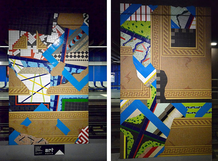 地鐵站月台的藝術品,↑為Hénon 地鐵站由 Claude Cognet 創作之馬賽克拼貼作品。