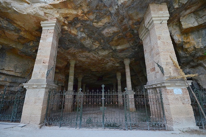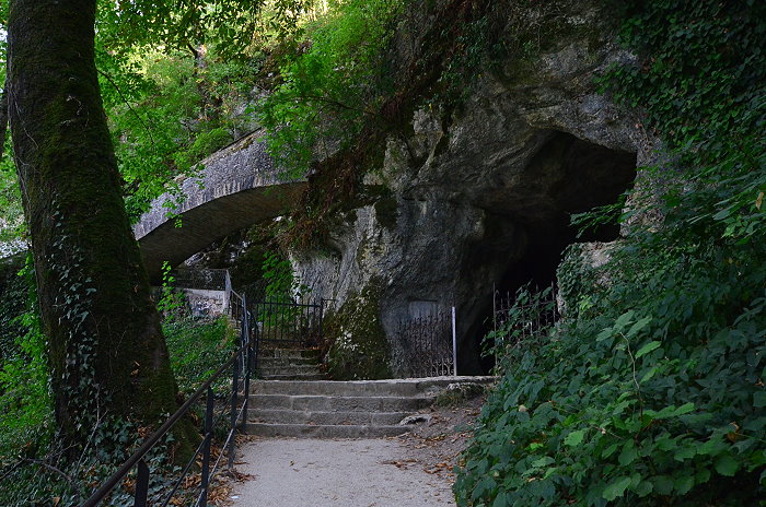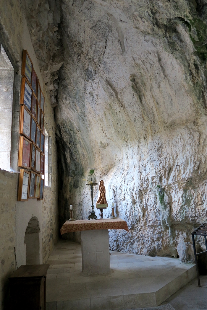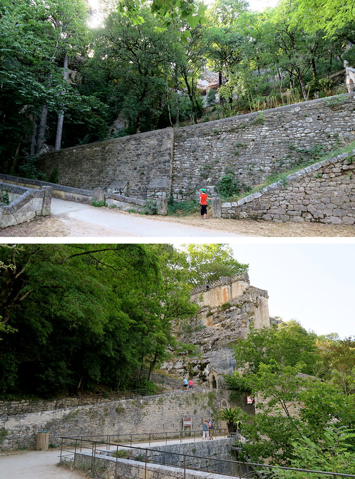 從上往下走,所以先看到苦路的最後一站(↑圖)位於一個曾經是採石場的洞穴內,由巨大的石柱支撐著的「聖塞普爾克雷洞(Grotte du Sépulchre)」,據說是以前聖阿馬杜(Saint Amadour)經常祈禱的地方。