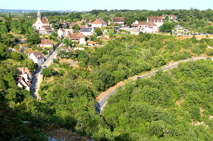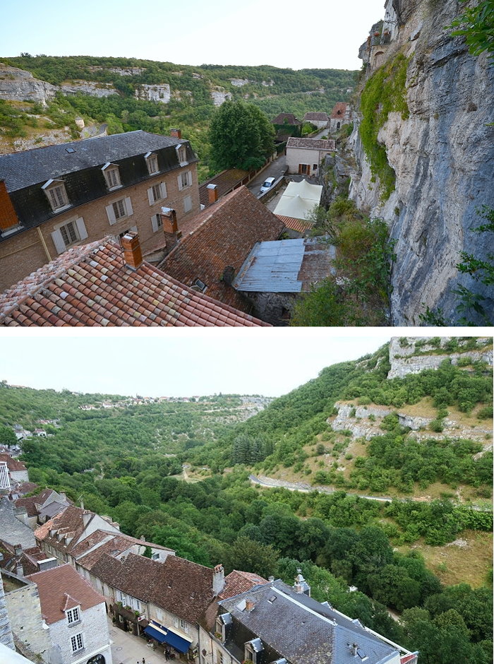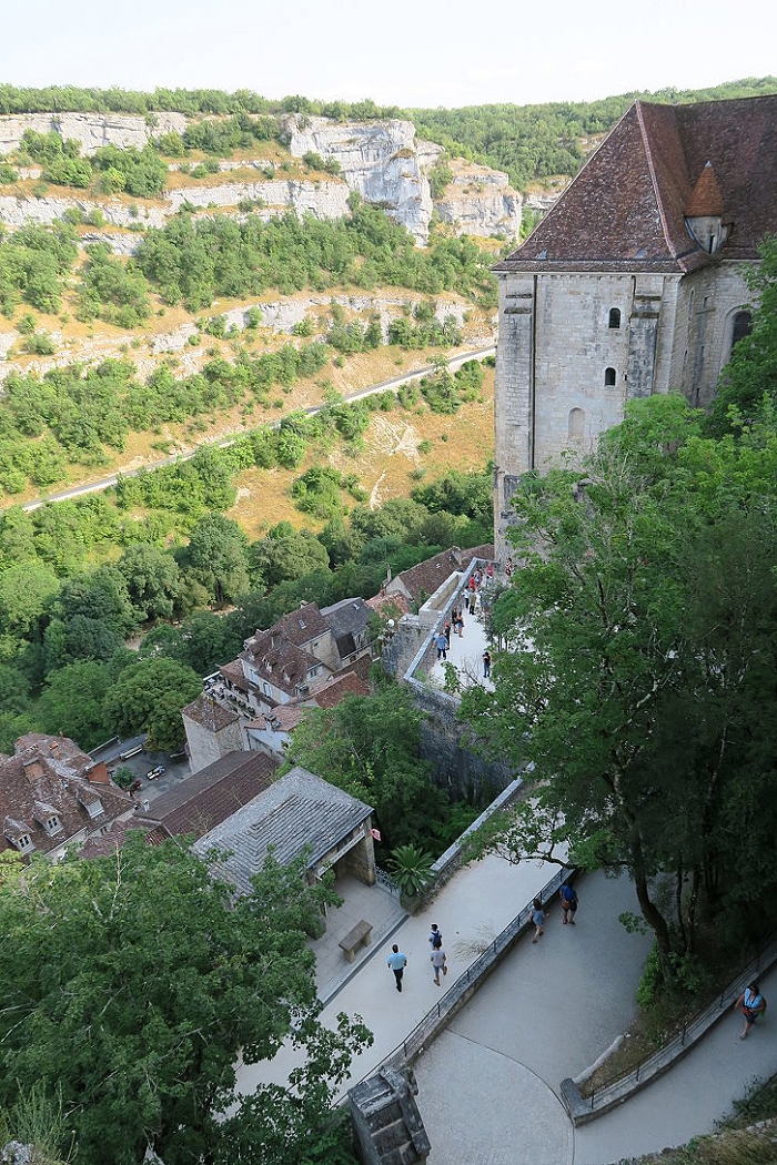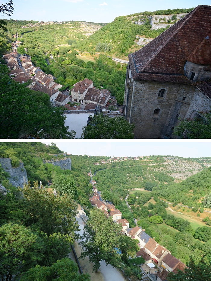 眺往羅卡馬杜爾(Rocamadour)的經典角度,可以清楚看到城鎮結構依石灰岩壁垂直而下到河谷,懸崖上建築主要可分為三層,恰好反映了中世紀的三種秩序階級,分別為:上層的騎士、中間的神職人員、下層的市井小民。