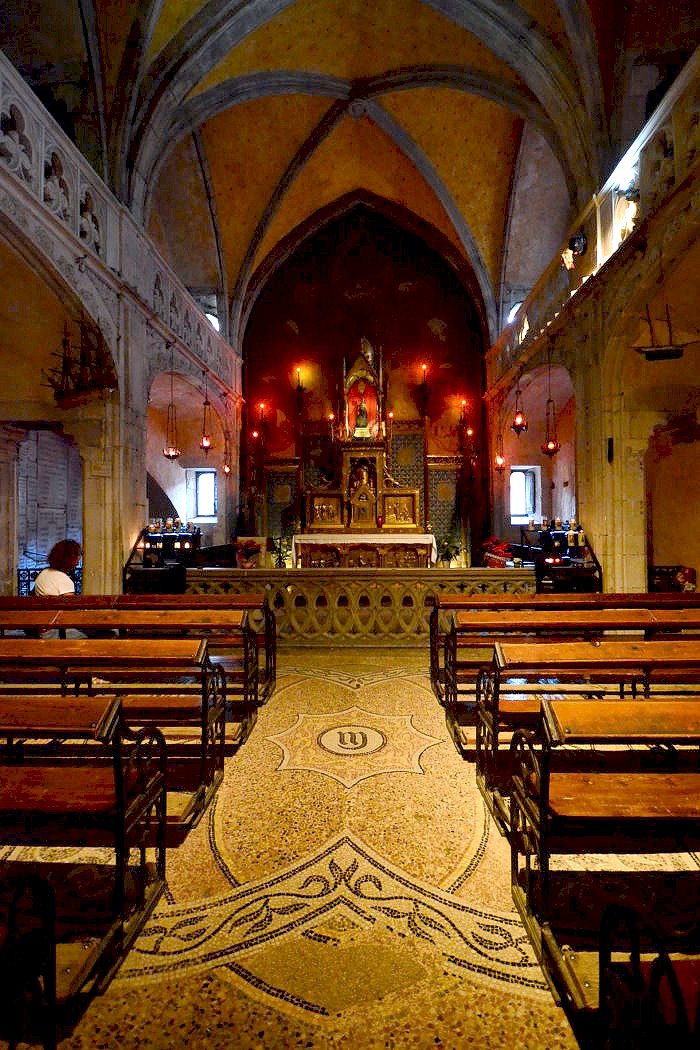 聖母禮拜堂中殿,哥德式肋狀拱頂和馬賽克地板。