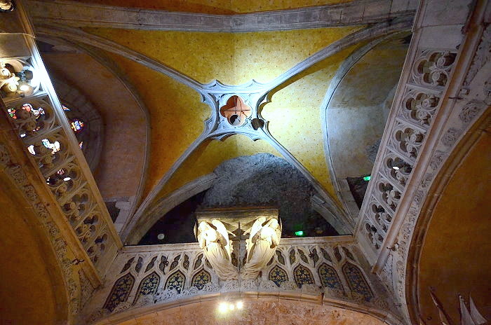 大教堂內四分式拱頂由一個巨大的雙拱支撐。
