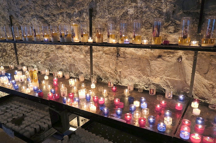 教堂內部崖壁牆邊有木製夾層,是19世紀時為容納大量朝聖者而增建。