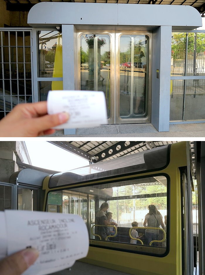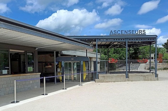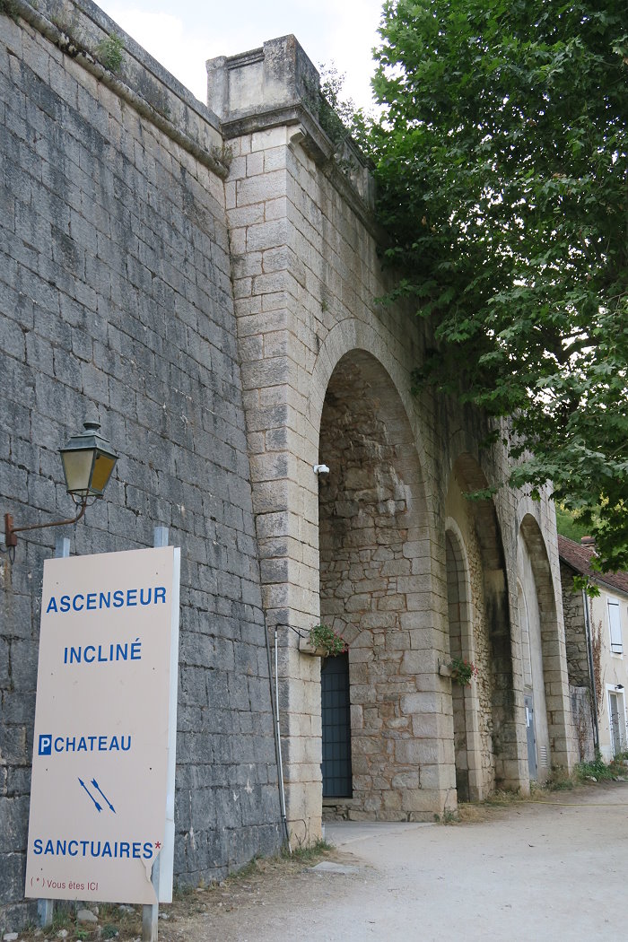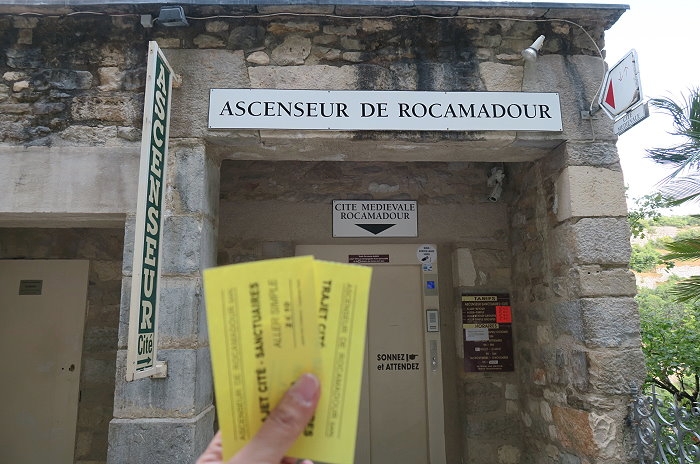 來到連接下城區和聖所的垂直電梯「Ascenseur de Rocamadour Lift Rocam」搭乘處,就位在Porte Salmon 附近。