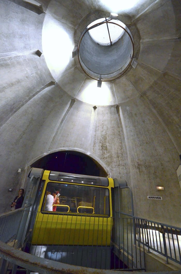 搭乘Ascenseur Incliné Solverocg傾斜電梯,穿過155公尺長隧道抵達頂層城堡站。