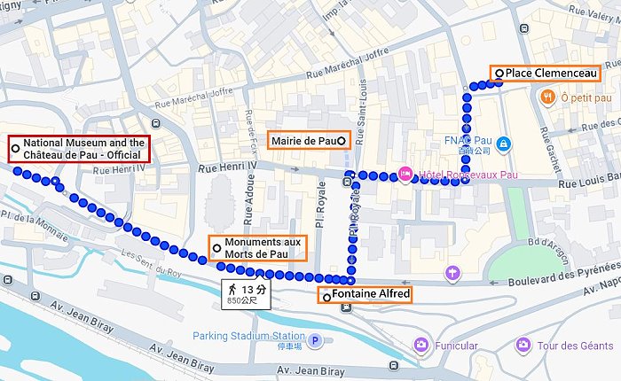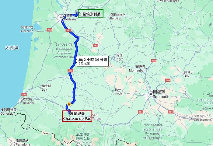 從聖埃米利翁(Saint-Emilion)驅車前往波城城堡,路程約252公里。