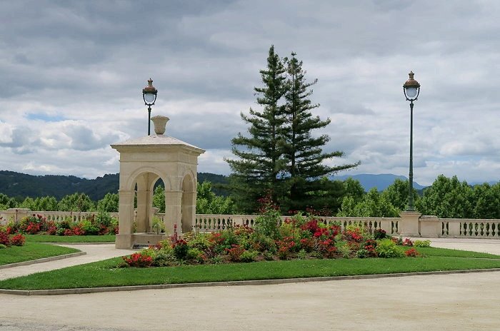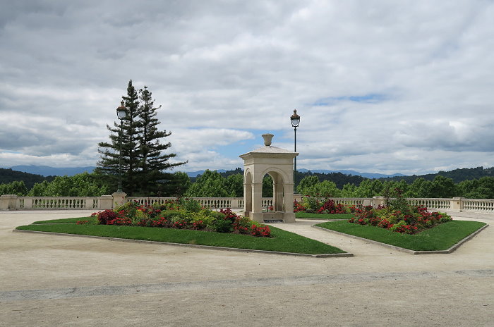皇家廣場露台,一片花木扶疏,可遠眺庇里牛斯山脈群峰,視野絕佳。