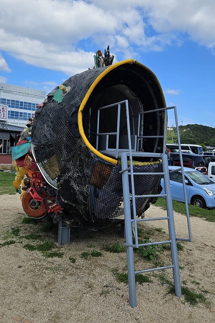 un04《宇野のチヌ(宇野的黑鯛)》日本藝術家Yodogawa-Technique撿拾宇野港附近的垃圾,召集居民提供不要的物品,所製作的海鮒(黑鯛)裝置藝術,設立於2010年首屆瀨戶內國際藝術祭,已成為宇野港的代表性地標作品。