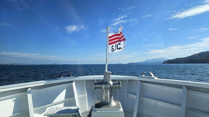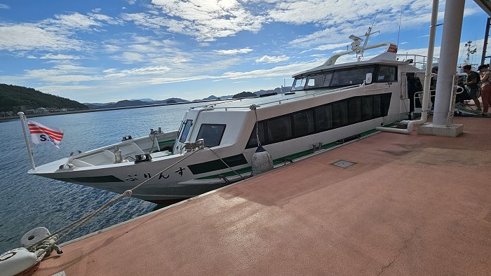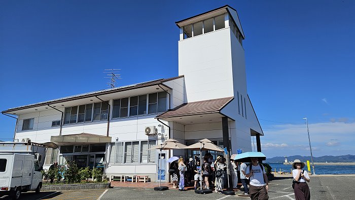 因為甲生到家浦港的豊島町営バス抵累,正好有計程車就和幾位同樣來自小小多山國家的美眉一起共乘,匆匆忙忙趕到家浦港搭乘前往犬島的船班──結果時間趕得及,船卻搭不上,因為人數過多,高速船無法乘載,於是就眼睜睜看著船班駛離,垂心肝!
