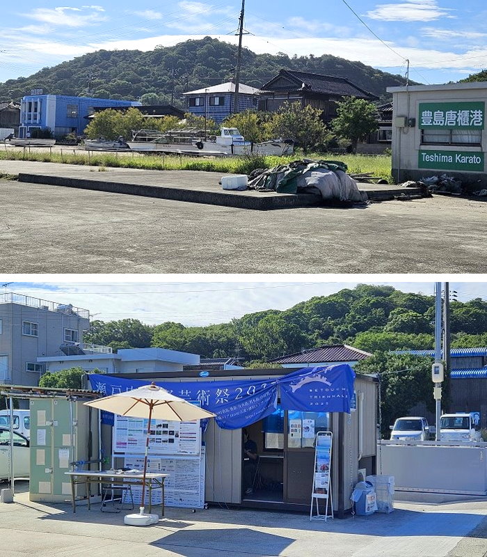 自宇野港經家浦港約40分鐘航程抵達唐櫃港,瀨戶內國際藝術祭的服務處就設在碼頭邊一座小小貨櫃屋裡。