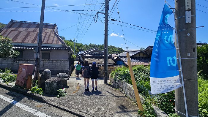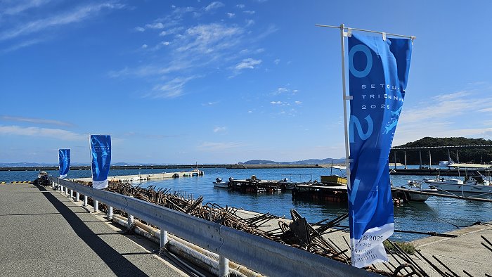 唐櫃港口,瀨戶內國際藝術祭的關東旗迎風招展。