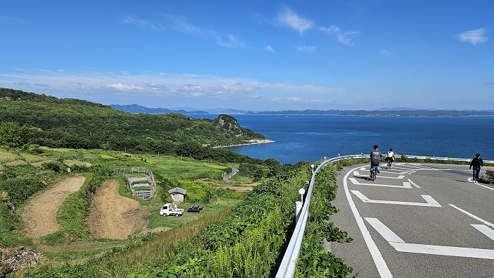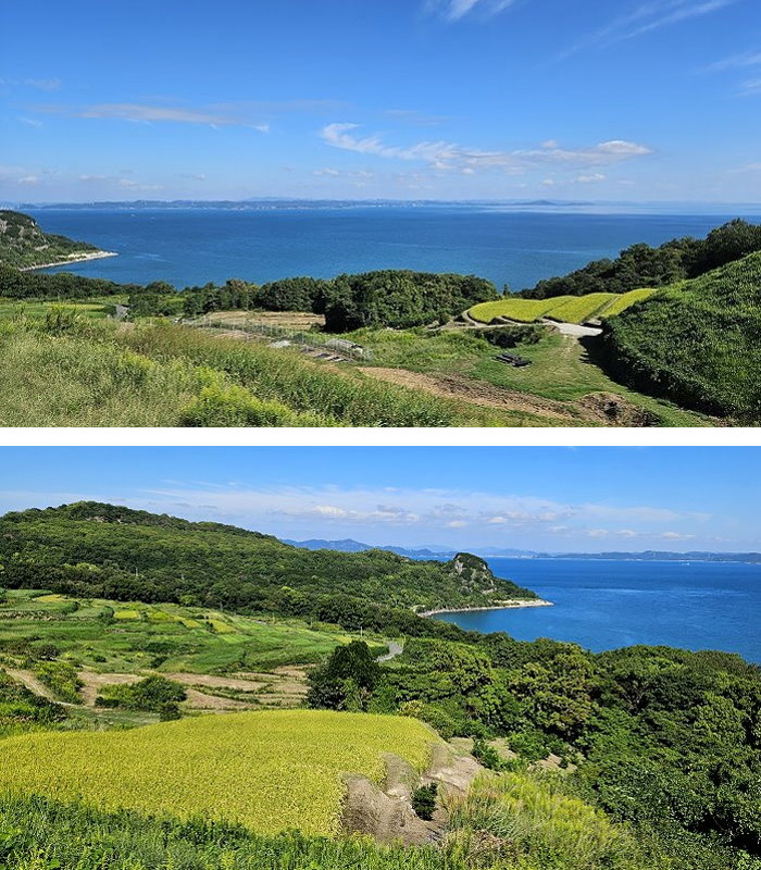 眺望蔚藍的瀨戶內海及大片豐饒梯田。