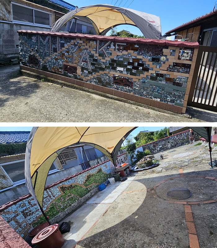 途經一處民宅的外牆與後院,有著精采的馬賽克拼貼。