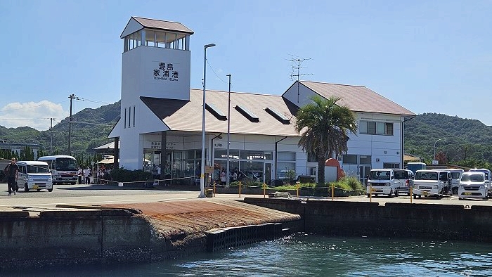 自「豊島美術館前」搭乘豊島町営バス,約14分鐘車程來到家浦港。