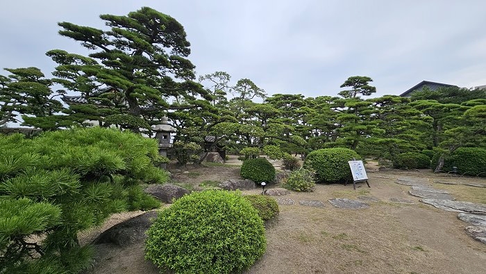 披雲閣庭園中約植有600棵松樹,蒼蒼鬱鬱立於庭中與枯山水相互伴襯。