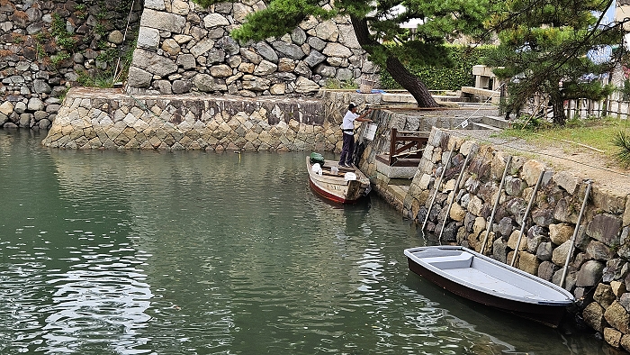 內堀木舟。高松城可進行「城舟體驗」活動,乘坐由船夫划行的船,遊覽城內堀約30分鐘,從水道上欣賞天守台及連接本丸與二之丸的鞘橋等建築。