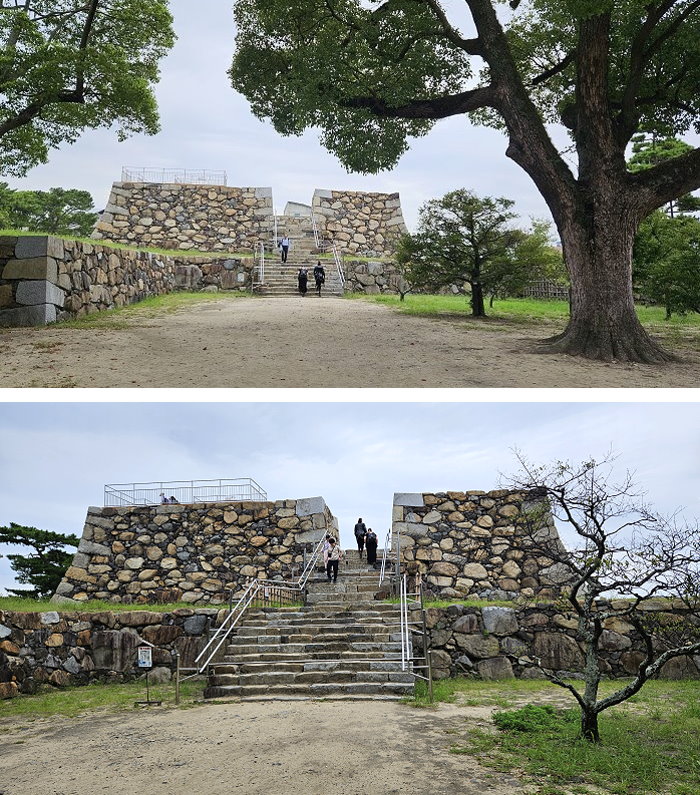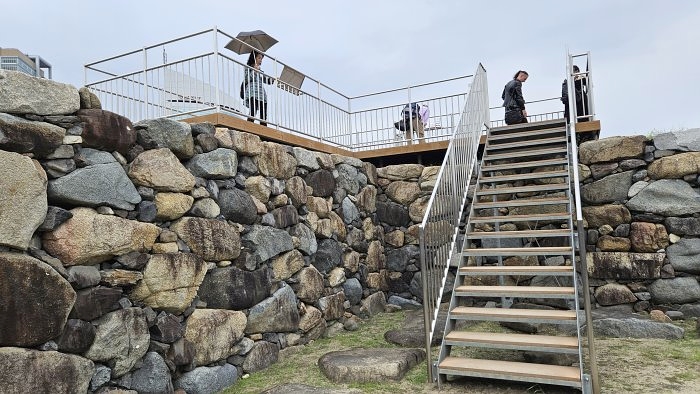 天守閣底座的石垣,依據江戶時代遺跡重建之石階通往天守展望台。