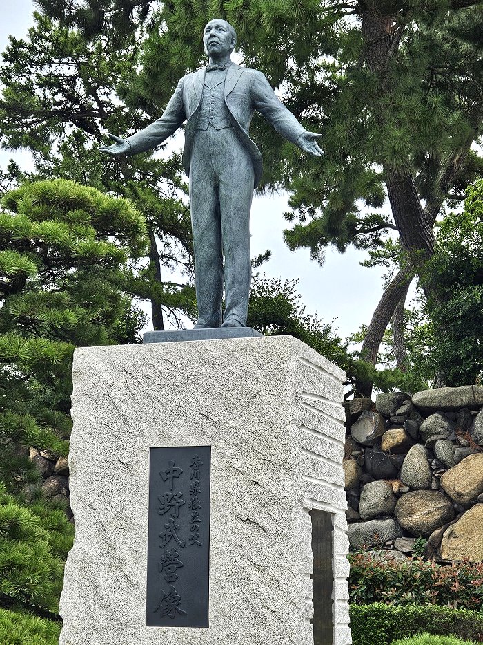 玉藻公園西廣場上立有《香川県独立の父 中野武營像》,為高松出身的雕刻家池川直所創作。
