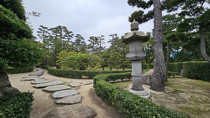 高松城,位於四國高松市玉藻町,因為高松城周圍的海域被稱為「玉藻之浦」,故而別名「玉藻城」;最早的修建是在豐臣秀吉征服四國之後,安土桃山時代天正15年(1587年)由讚岐國大名生駒親正建造的本城,現今可見遺址主要為寬永19年(1642年)由高松藩主松平賴重改建天守及新建北之丸、東之丸城廓,完成了高松城的基本樣貌,是生駒家4代、松平家11代歷代藩主居住的城堡,自此,高松作為松平氏的城下町繁榮了228年。明治2年(1869年)隨著「版籍奉還」的實施,高松城被廢棄,城內天守在1884年因老化而拆除。高松城護城河與海洋直接連接,為「日本三大水城」之一,現在的高松城整修了包括城跡及曾作為藩主居住地的建築物等,作為國家指定史跡,也是日本100名城之一,是高松市區觀光的理想起點。