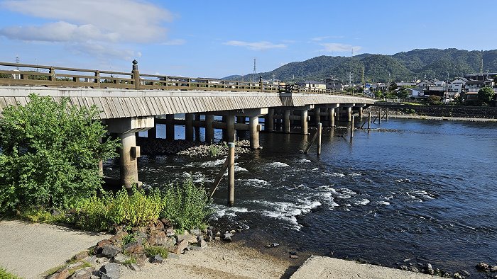 宇治川,屬淀川水系的一部分,流經宇治地區的核心地帶,也是《源氏物語》中描寫的詩意場景;橫跨其上的「宇治橋」相傳始建於大化2年(646年)是日本三古橋之一,現今所見的橋梁為平成8年(1996年)重建,長約155公尺,寬約25公尺,以扁柏高欄、青銅製擬寶珠的傳統形式,呈現內斂雅緻的外觀與宇治古韻的街景相得益彰。
