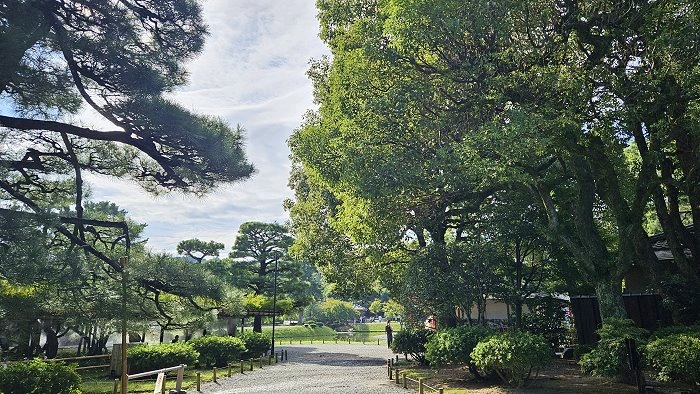 自表門而出。10月上旬不是紅葉時期前來,惟見平等院庭園景觀由鳳凰堂獨美,園區清靜許多。