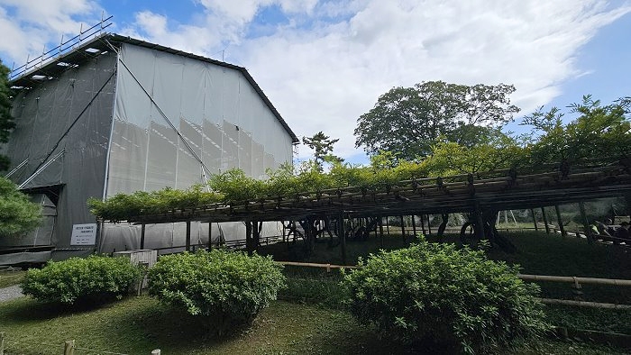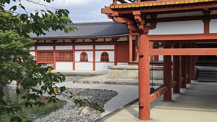 尾廊連接鳳凰堂正堂(右側);左側翼廊是參觀鳳凰堂內部進入的廊道。
