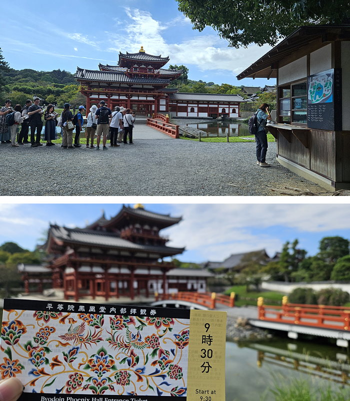 參觀鳳凰內部需另外在「鳳凰堂拝観受付」處(↑圖右側)購票,並依票面上指定時間提前10分鐘抵達橋邊集合。