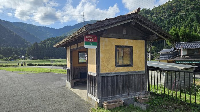 下車的「北/かやぶきの里(茅葺之里)」ばすのりば就位於茅葺之里北集落前,回程要過馬路到對向的巴士站搭車。